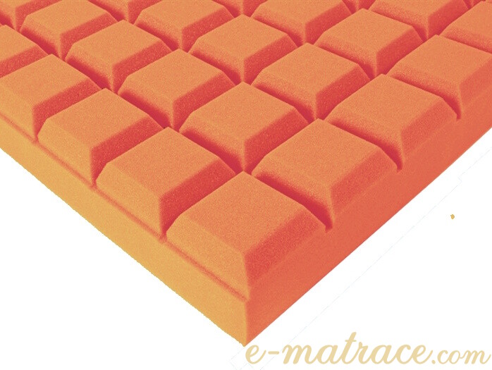 Akustická pěna čokoláda v rozměru 50x50x9 cm, 100x100x9 cm nebo 100x200x9 cm v oranžová barvě pro pohlcení zvuku v interiéru.