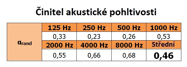 Koef. akustické pohltivosti: 0.46