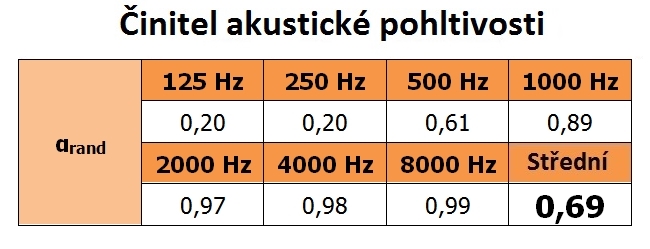 Tabulka αrand je definována koeficientem vstřebávání v závislosti na kmitočtu. Měření probíhá při určitých frekvencích kde výsledná hodnota je udává průměrnou hodnotu činitele akustické pohltivosti, tedy schopnosti materiálu pohlcovat zvuk.