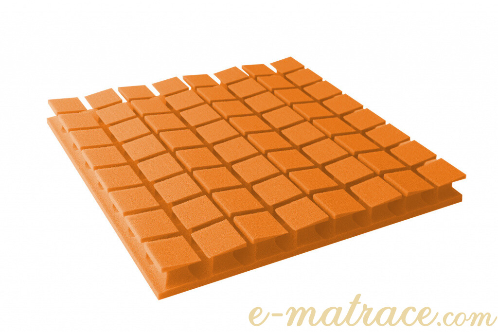Akustická pěna premium PM-8K-U v rozměru 60x60x6 cm v oranžové barvě pro pohlcení zvuku v interiéru. Nejvyšší řada absorbérů nabízí vysoké absorpční koeficienty s jedinečnými tvary a vzhledem.