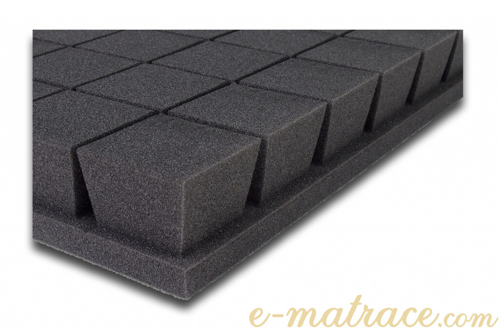 Akustická pěna jehlan v rozměrech 50x50x5 cm nebo 115x195x5 cm v grafitové barvě pro pohlcení zvuku v interiéru.
