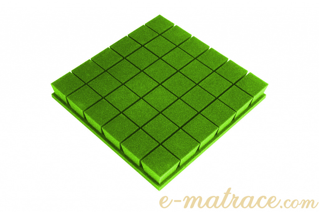 Akustická pěna combo A v rozměru 50x50x4 cm v zelené barvě pro tlumení zvuku.