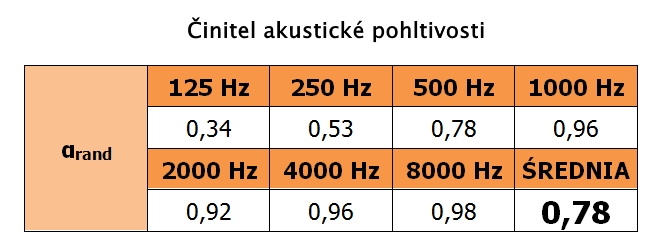 Tabulka αrand je definována koeficientem vstřebávání v závislosti na kmitočtu. Měření probíhá při určitých frekvencích kde výsledná hodnota je udává průměrnou hodnotu činitele akustické pohltivosti, tedy schopnosti materiálu pohlcovat zvuk.