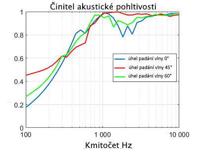 Graf činitele zvukové pohltivosti je definován poměrem intenzity zvuku vlny pohlcené v daném materiálu k intenzitě zvuku dopadající vlny na daný materiál. Tato veličina charakterizuje schopnost plochy pohlcovat zvuk. Plocha, která pohlcuje veškerý zvuk má α=1, zatímco plocha dokonale odrážející zvuk má α=0.