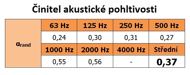 Tabulka αrand je definována koeficientem vstřebávání v závislosti na kmitočtu. Měření probíha při určitých frekvencích kde výsledná hodnota je udává průměrnou hodnotu činitele akusticé pohltivosti, tedy schopnosti materiálu pohlcovat zvuk.