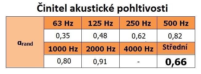 Tabulka αrand je definována koeficientem vstřebávání v závislosti na kmitočtu. Měření probíha při určitých frekvencích kde výsledná hodnota je udává průměrnou hodnotu činitele akusticé pohltivosti, tedy schopnosti materiálu pohlcovat zvuk.