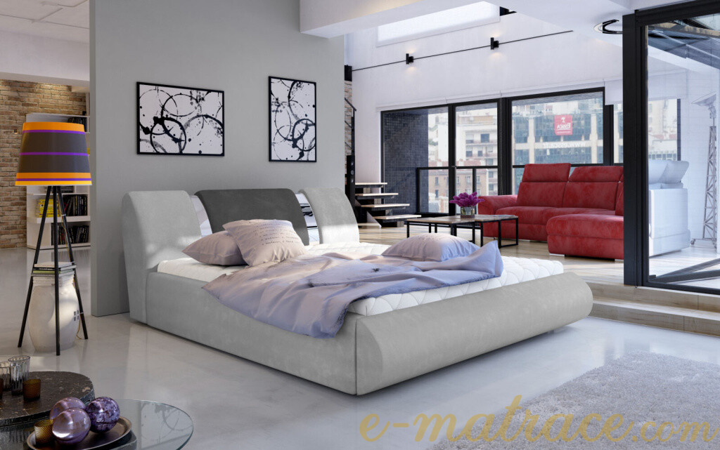 Vyobrazená varianta: Paros 05/ Paros 06. Postel lze vybírat z mnoha kombinací látek a ekokůží. Výběr ze tří rozměrových variant.
