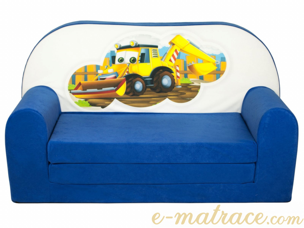 Dětská rozkládací pohovka + taburet Bagr světle modrá