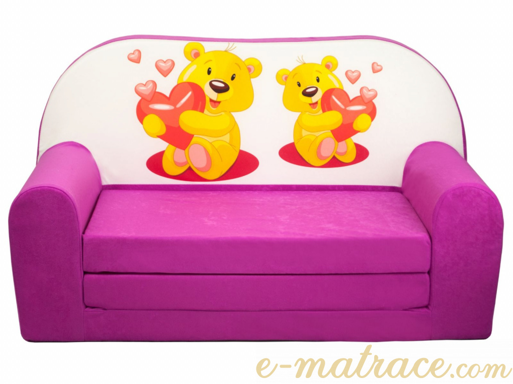 Dětská rozkládací mini pohovka je vyrobená z PUR pěny, která pro Vaše dítě zajistí vysoký komfort. Nemá žádné ostré hrany a ani jiné nebezpečné prvky. Pohovka je určena pro děti do 6 let. Matrace jsou trvale připevněny. Díky váze pohovky nebude pro dítě žádný problém pohovku rozložit, složit nebo přesunout na jiné místo. Potah je vyroben z Mikrofáze a v případě jeho znečištění, ho lze sejmout pomocí zipu a vyprat v pračce při 30°C. Na výběr je mnoho dětských vzorů a barevných variací.