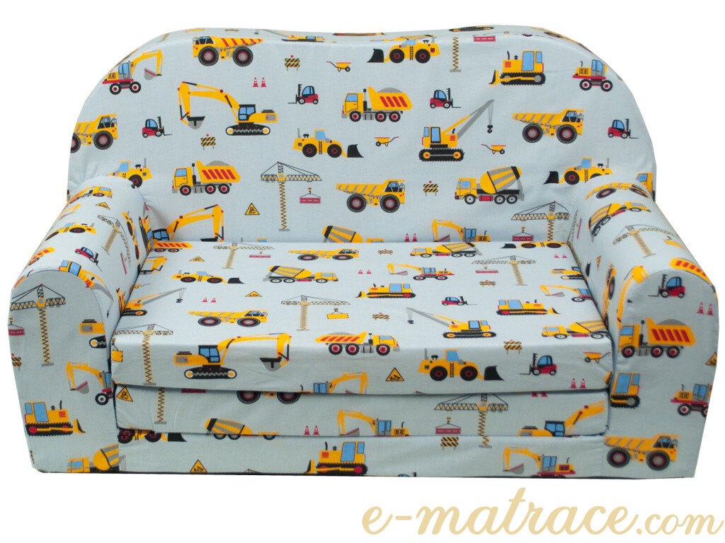 Rozměr pohovky 43x85x49 cm. Po rozložení 113x85x49 cm, rozměr ložné plochy 105x60x6 cm. Pohodlná dětská mini pohovka Autíčka za akční cenu. Působí...