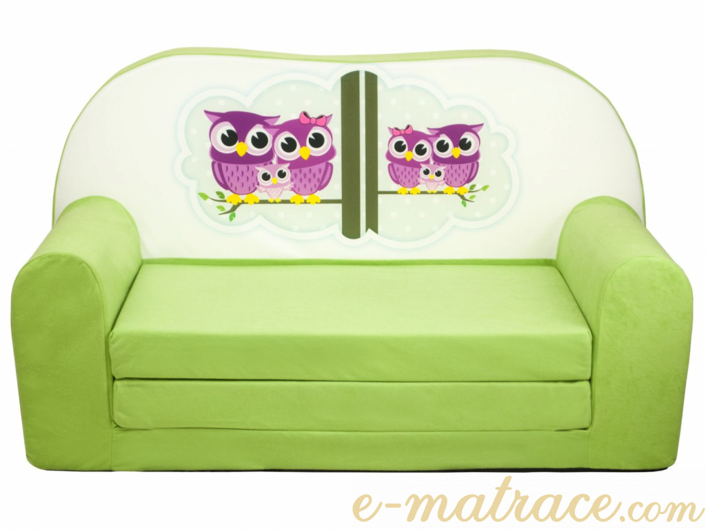 Dětská rozkládací mini pohovka Sovy růžová -26%