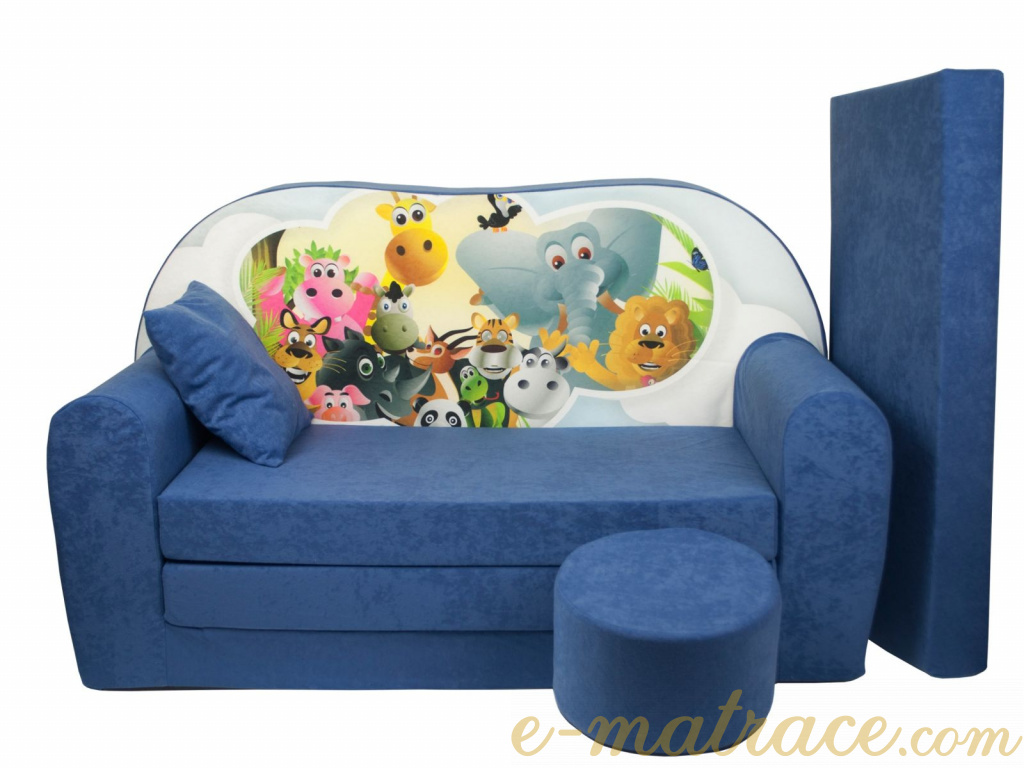 Dětská rozkládací pohovka je vyrobená z PUR pěny, která pro Vaše dítě zajistí vysoký komfort. Nemá žádné ostré hrany a ani jiné nebezpečné prvky. Pohovka je určena pro děti do 6 let. Tři matrace jsou trvale připevněny, čtvrtá se připevňuje na suchý zip, v rozloženém stavu prodlužuje délku matrace o 40 cm a ve složeném stavu vyvyšuje sedací plochu o 8 cm. Díky váze pohovky nebude pro dítě žádný problém pohovku rozložit, složit nebo přesunout na jiné místo. Potah je vyroben z Mikrofáze a v případě jeho znečištění, ho lze sejmout pomocí zipu a vyprat v pračce při 30°C. Na výběr je mnoho dětských vzorů a barevných variací. Taburet a polštářek v ceně.