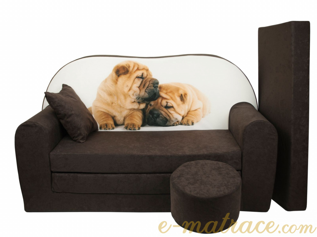 Dětská rozkládací pohovka + taburet Pejsci hnědá