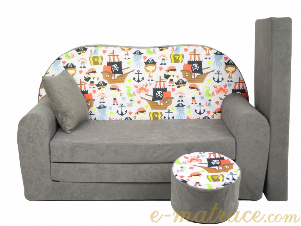 Dětská rozkládací pohovka je vyrobená z PUR pěny, která pro Vaše dítě zajistí vysoký komfort. Nemá žádné ostré hrany a ani jiné nebezpečné prvky. Pohovka je určena pro děti do 6 let. Tři matrace jsou trvale připevněny, čtvrtá se připevňuje na suchý zip, v rozloženém stavu prodlužuje délku matrace o 40 cm a ve složeném stavu vyvyšuje sedací plochu o 8 cm. Díky váze pohovky nebude pro dítě žádný problém pohovku rozložit, složit nebo přesunout na jiné místo. Potah je vyroben z Mikrofáze a v případě jeho znečištění, ho lze sejmout pomocí zipu a vyprat v pračce při 30°C. Na výběr je mnoho dětských vzorů a barevných variací. Taburet a polštářek v ceně.