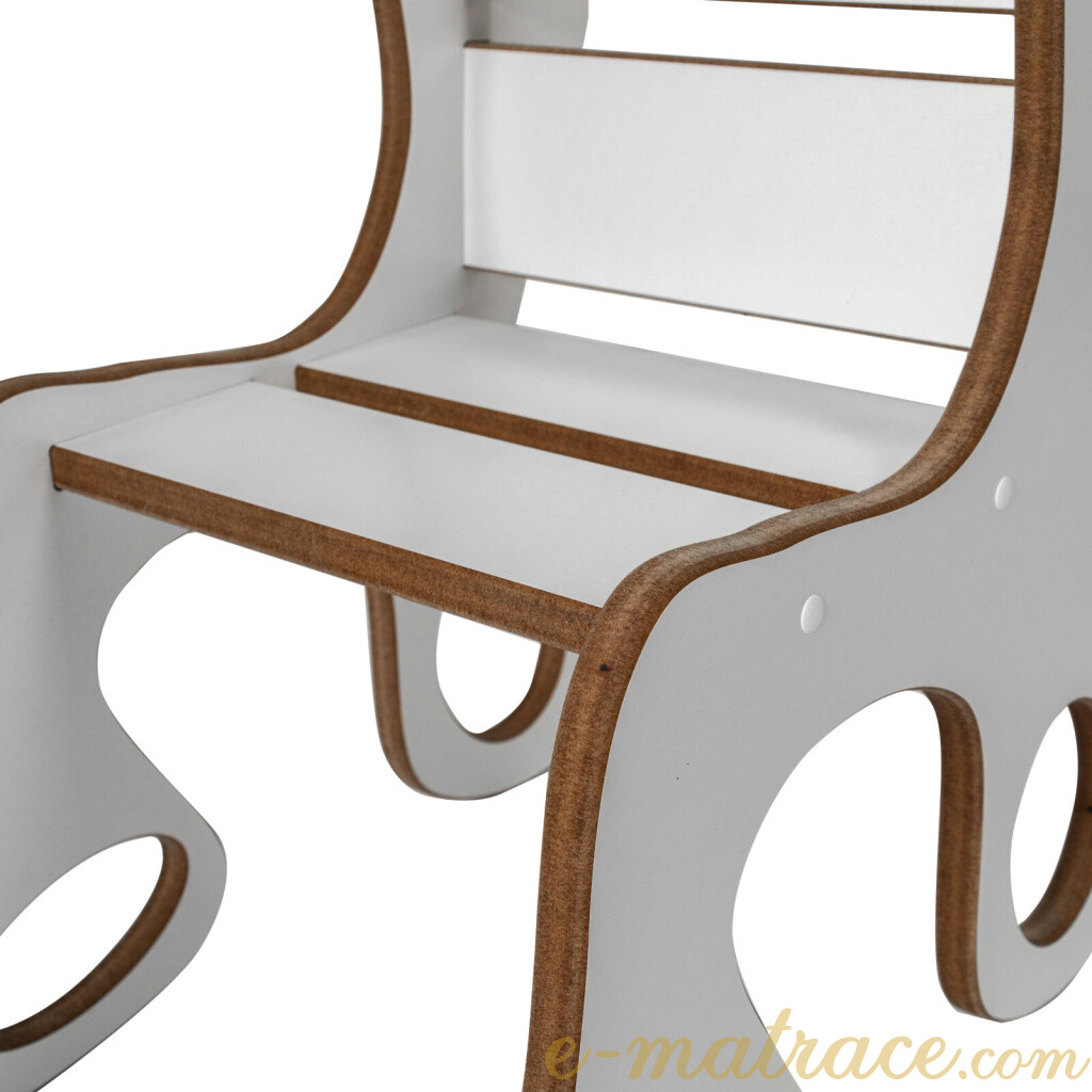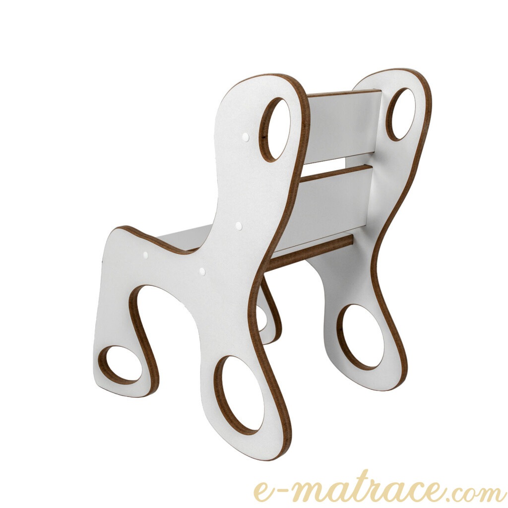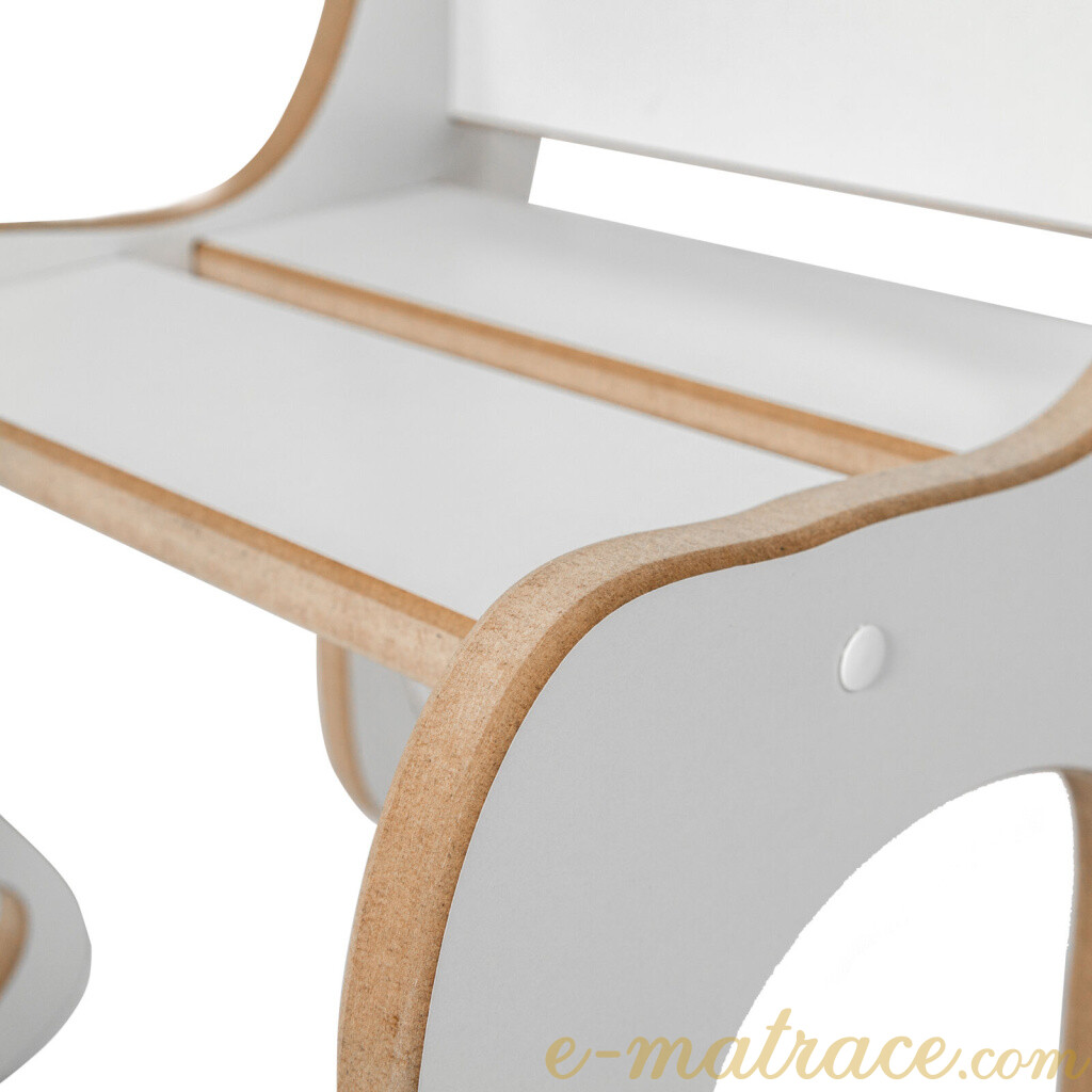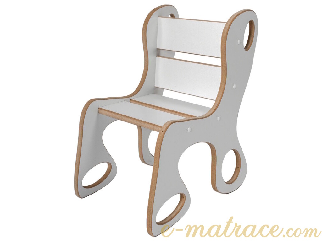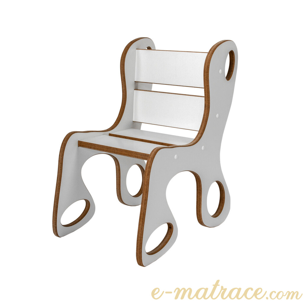Dětská židlička bílá MDFDřevovláknitá deska je multifunkční alternativou masivního dřeva. Používá se na konstrukce nábytků a vnitřního vybavení. Je vhodná pro povrchovou úpravu laminací, vysokotlakým laminátem, lakováním, dýhováním, frézováním v ploše i hraně. je stylovým a praktickým doplňkem do dětského pokoje, který nabízí pohodlné a bezpečné místo k sezení při hraní, kreslení, čtení nebo svačině. Díky jednoduchému designu a přírodnímu provedení z kvalitního překližkového dřeva se snadno sladí s ostatním nábytkem a interiérem. Konstrukce je pevná a odolná, s zaoblenými hranami pro maximální bezpečnost dětí. Židlička je lehká (6 kg), takže ji děti mohou snadno přenášet, a zároveň stabilní, což zajišťuje její dlouhou životnost i při každodenním používání.