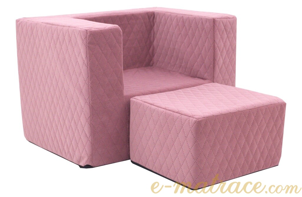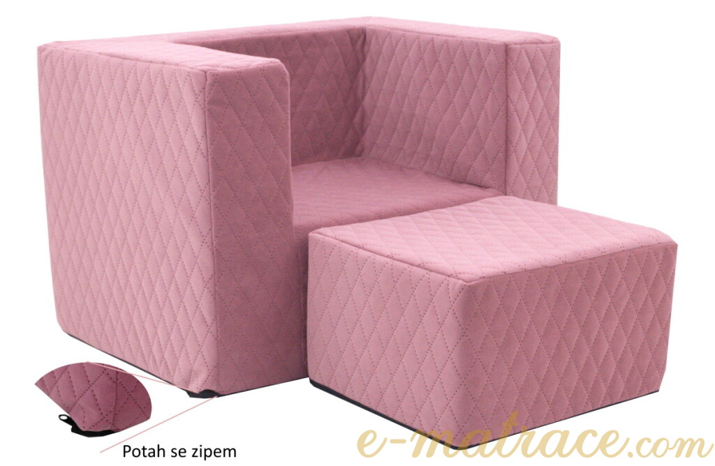 Dětské křesílko s taburetem je vyrobené z PUR pěny, která pro Vaše dítě zajistí vysoký komfort. Křesílko i taburet jsou vybaveny potahem na zip z hebké tkaniny Matt Velvet, jenž oproti klasické tkanině zpomaluje prosakování vody. Křesílko nemá ostré hrany a ani jiné tvrdé prvky a je určeno pro děti do 6 let. Díky své váze nebude pro děti žádný problém s křesílkem pohybovat. Taburet lze navíc snadno umístit do křesílka, čímž ušetříte mnoho místa při uskladnění.