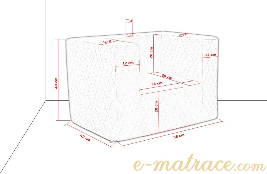 Rozměr křesílka 60x40x45 cm. Výška sedací plochy 15 cm.Praktické dětské křesílko, které Vaše dítě může využít ke hraní, koukání na TV nebo kreslení.