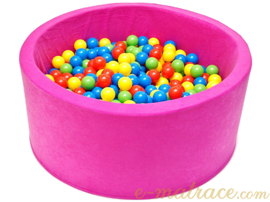 Suchý bazének pro děti s barevnými míčky. Ideální pro dětské hry a rozvoj. Rozměr bazénku 90x40 cm. Certifikované materiály - PUR pěna se snímatelným velurovým potahem.