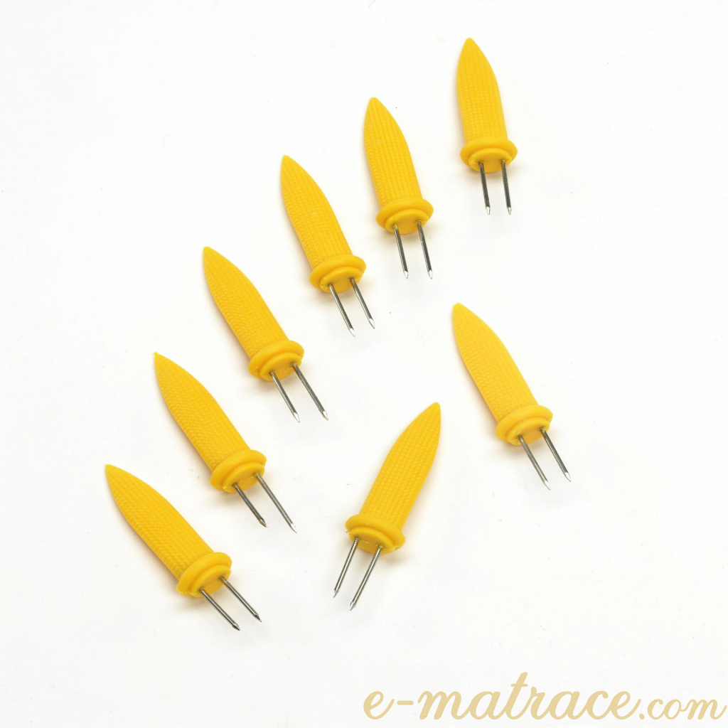 Máte v oblibě grilovanou či vařenou kukuřici? Tak to Vám  doma zaručeně nesmí chybět pořádný držák kukuřice. Tato sada obsahuje 8 ks žlutých držáku v motivu kukuřice.