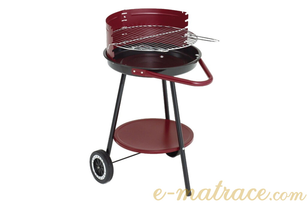 Gril na dřevěné uhlí Round 40 cm výškově nastavitelným roštem a kolečky. Průměr roštu 36,5 cm. Vhodný až pro 5 osob.