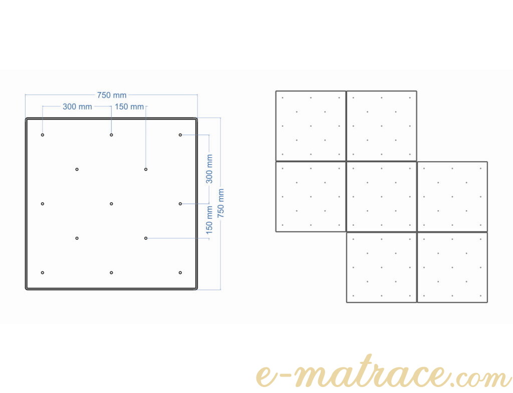 Lezecké stěny jsou navrženy v modulech 75x75 cm. Stěna je vyrobena ze silné březové překližky o síle 1,5 cm, díky čemuž unese váhu až do 100 kg. Hrany desek jsou zkosené. Každá stěna je dodávána se sadou lezeckých chytů a montážní sadou.