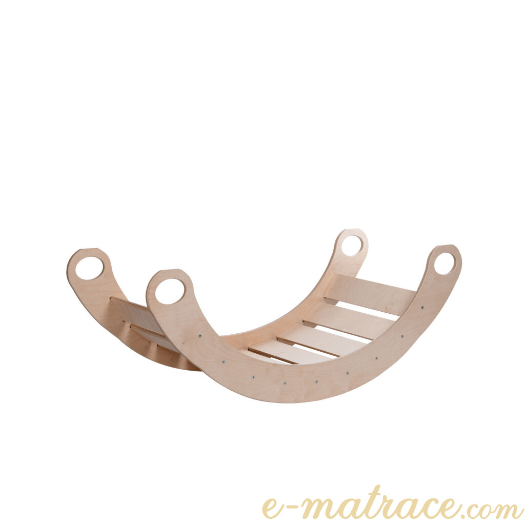 Vysoce kvalitní, bezpečná a zábavná Montessori houpačka 6v1 v XXL přírodním provedení podporuje zdravý motorický vývoj vašeho dítěte. Jedná se o výrazně větší typ houpačky tohoto typu o délce 126 cm, výšce 47.5 cma šířce 51.5 cm, díky čemuž bude dítě houpačku využívat mnohem delší dobu než menší varianty, ze kterých dítě rychleji vyroste. Díky své velikosti ji děti mohou využívat nejen jako houpačku, ale také jako skluzavku, úkryt, prolézačku, sedátko nebo stolek. Houpačka je precizně zhotovena z prvotřídní překližky. Tato dřevěná XXL houpačka je ideální pro děti ve věku od 1 roku.
