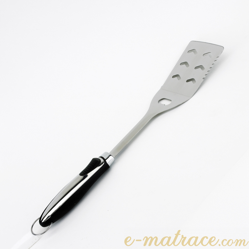 Nerezová obracečka s ergonomickou rukojetí, chrání před popálením a výborně se drží v ruce. Obracečka je vybavena praktickým pilkovým nožíkem a otvírákem, pomocí kterého si jednoduše otevřete svoje oblíbené lahvové pivo, dále Vám samozřejmně poslouží k obracení steaků a hamburgerů apod. Za praktické očko lze kartáč kdekoliv zavěsit. Tuto obracečku jistě ocení každý mistr grilu.