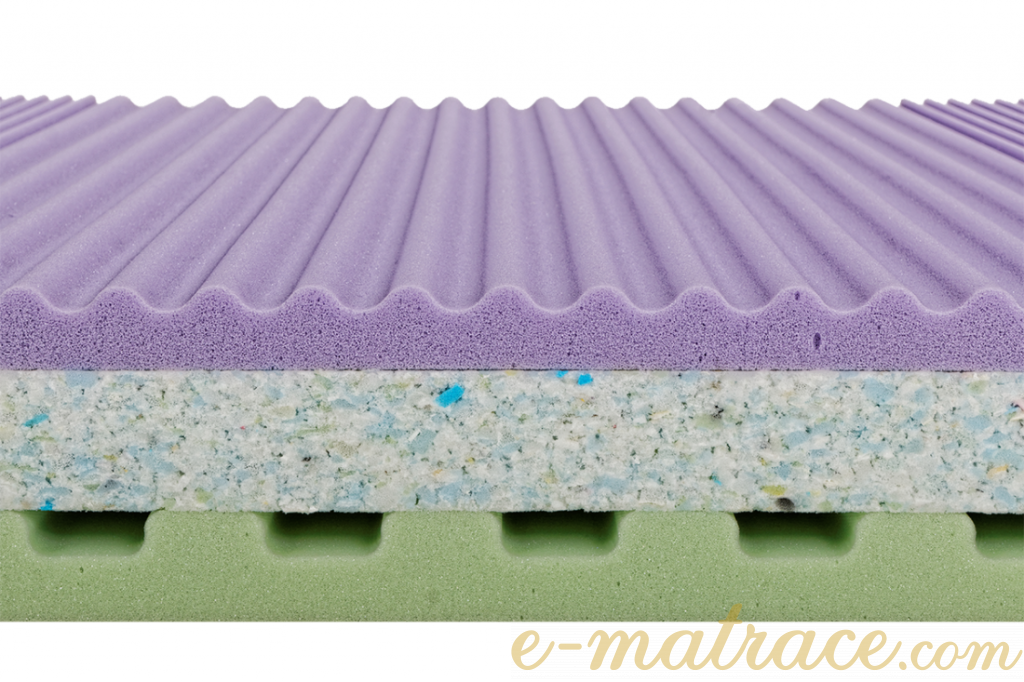 Pěnová matrace Miriam je složena z HR studené pěny a PUR (polyuretanové) pěny.