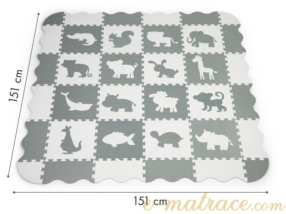 Pěnová podložka pro děti Zvířata o délce 151 cm. Pěnové puzzle s možností sestavení do suchého bazénku nebo kostky. Vyrobena z certifikovaného materiálu EVA. Vhodné pro děti od prvních dní věku.