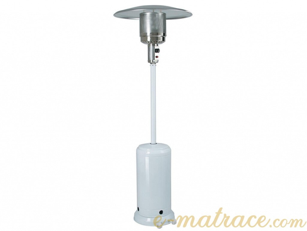 Zahradní plynové topidlo / zářič Etna v bílém provedení. S výkonem 13 kW a nízkou spotřebou plynu 0,87 kg/h. Příslušenství pro připojení propanbutanové lahve je součástí balení.