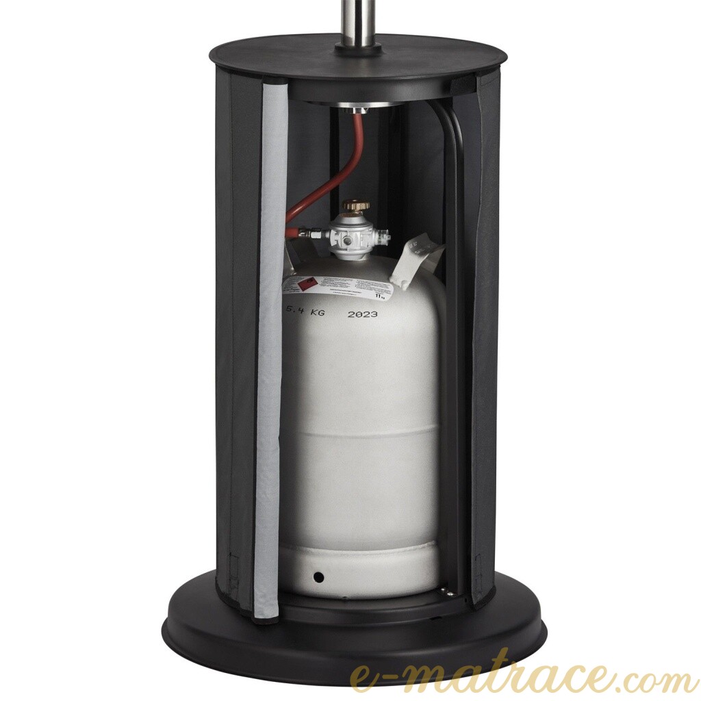 Zahradní plynové topidlo / zářič Etna v černém provedení. S výkonem 13 kW a nízkou spotřebou plynu 0,87 kg/h. Příslušenství pro připojení...