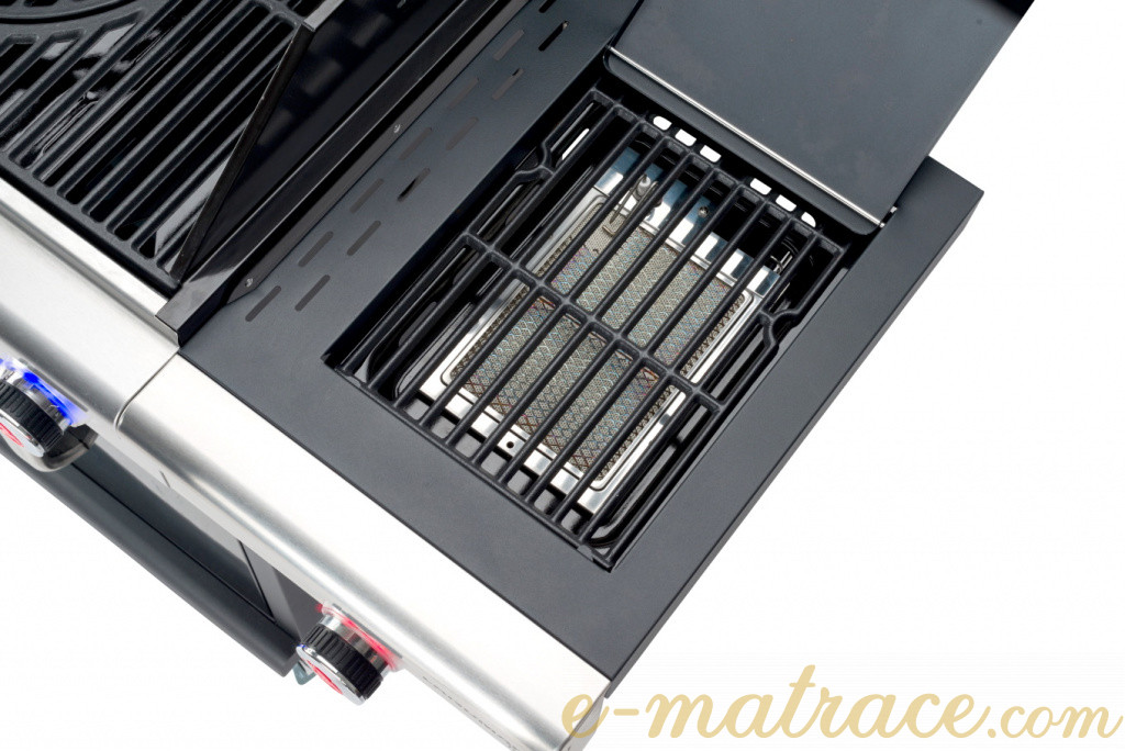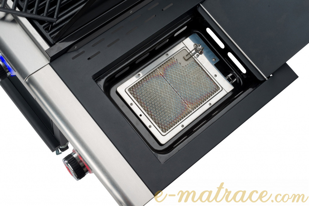 Gril nabízí patentovaný systém PTS a je vyroben v kombinaci lakovaného ocelového plechu a nerezové oceli. Obsahuje čtyři plynule nastavitelné hořáky z nerezové oceli a jeden keramický postranní hořák Infrarot pro grilování, všechny hořáky jsou vybaveny piezo zapalováním. Otočné knoflíky jsou vybaveny LED osvětlením. Dalšími vlastnosti tohoto grilu jsou litinový rošt se smaltovanou mřížkou nebo praktický systém pro svedení přebytečného tuku do odnímatelné misky. Na víku se nachází ukazatel teploty. Pro přípravu pokrmů můžete využít odkládací plochu. Úložný prostor pod grilem dobře poslouží pro uskladnění vybavení ke grilování. Pro snadnější manipulaci je gril vybaven kolečky.