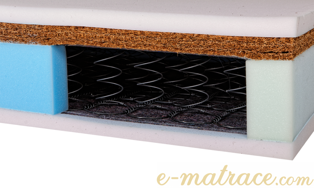 | Materiál: | PUR - polyuretan. pěna, visco - líná pěna, kokos, pružinové jádro |
