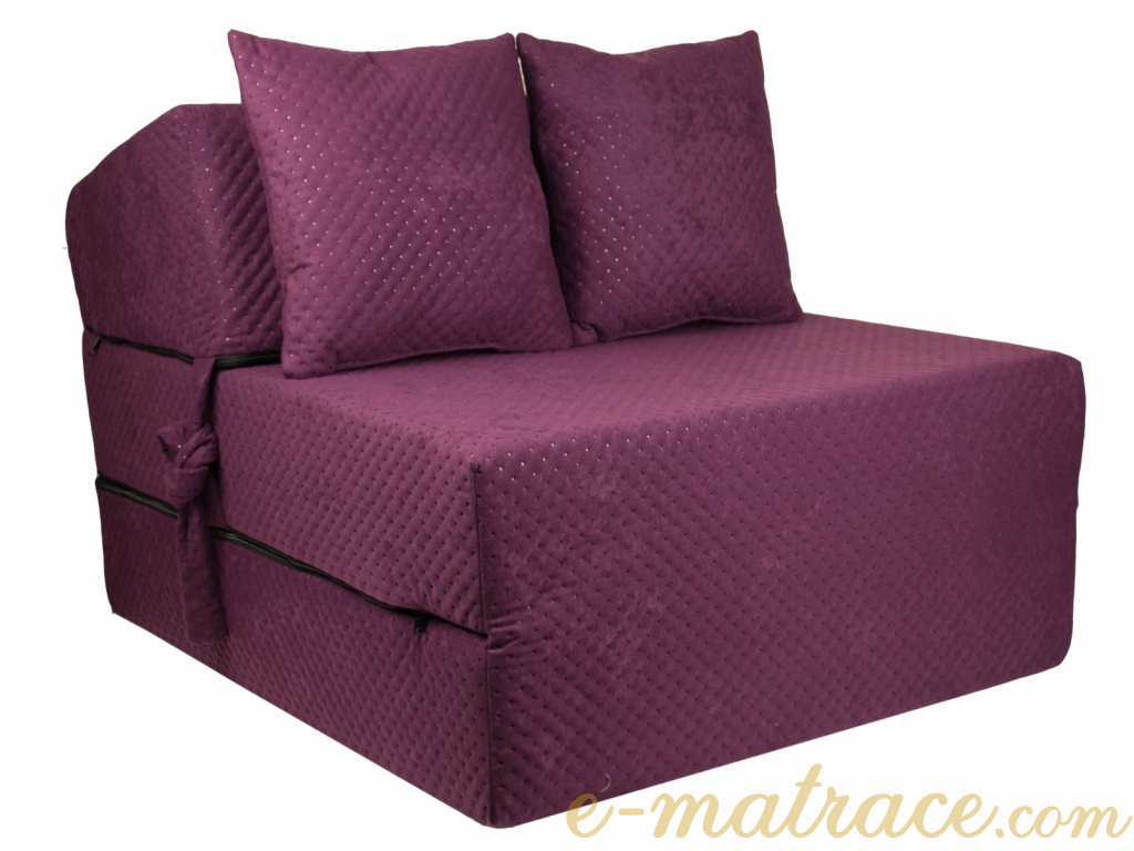 Jádro rozkládacího křesla je vyrobené z odolné PUR pěny. Svou tloušťkou 15 cm a nosností do 120 kg zajistí dostatečný komfort pro všechny typy postav. Jednoduché rozložení a složení, podle toho co v danou situaci potřebujete. Tvarovaná opěrka s jemným sklonem je příjemná k sezení i spaní. Potah je vyroben z vysoce kvalitní polstrované textílie prošívané UV, v případě znečištění ho lze sejmout pomocí zipu a vyprat v pračce při 30°C. Na výběr je mnoho barevných a vzorových variací s prošívanými a neprošívanými potahy. Ke každému křesílku 2 polštářky zdarma. Toto křeslo můžete najít také pod názvem Křeslo Super.