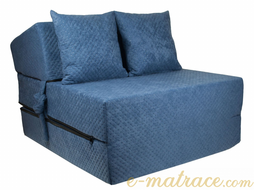 Jádro rozkládacího křesla je vyrobené z odolné PUR pěny. Svou tloušťkou 15 cm a nosností do 120 kg zajistí dostatečný komfort pro všechny typy postav. Jednoduché rozložení a složení, podle toho co v danou situaci potřebujete. Tvarovaná opěrka s jemným sklonem je příjemná k sezení i spaní. Potah je vyroben z vysoce kvalitní polstrované textílie prošívané UV, v případě znečištění ho lze sejmout pomocí zipu a vyprat v pračce při 30°C. Na výběr je mnoho barevných a vzorových variací s prošívanými a neprošívanými potahy. Ke každému křesílku 2 polštářky zdarma. Toto křeslo můžete najít také pod názvem Křeslo Super.