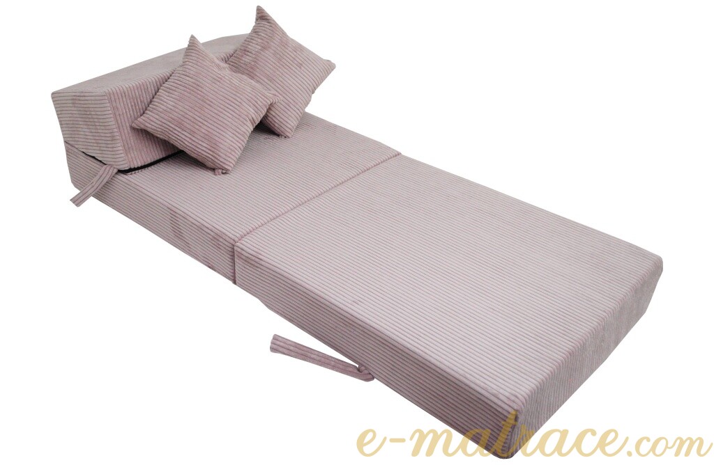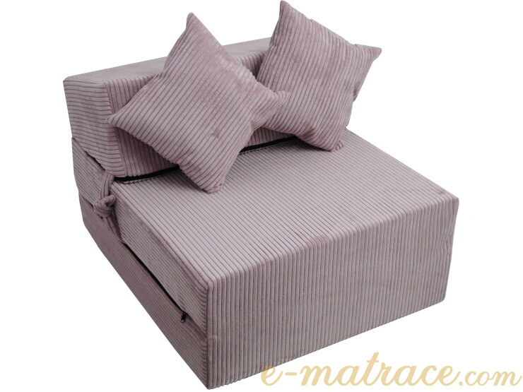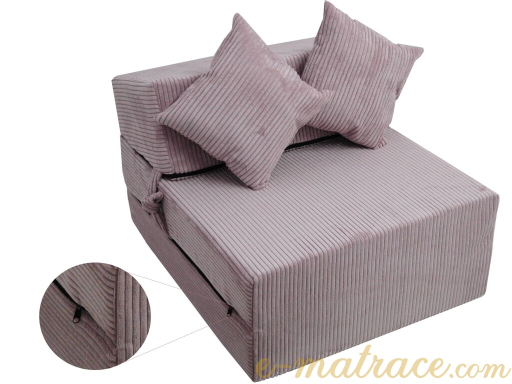 Jádro rozkládacího křesla je vyrobené z odolné PUR pěny. Svou tloušťkou 15 cm a nosností do 120 kg zajistí dostatečný komfort pro všechny typy postav. Jednoduché rozložení a složení, podle toho co v danou situaci potřebujete. Tvarovaná opěrka s jemným sklonem je příjemná k sezení i spaní. Potah je vyroben z vysoce kvalitní polstrované textílie, v případě znečištění ho lze sejmout pomocí zipu a vyprat v pračce při 30°C. Na výběr je mnoho barevných a vzorových variací.