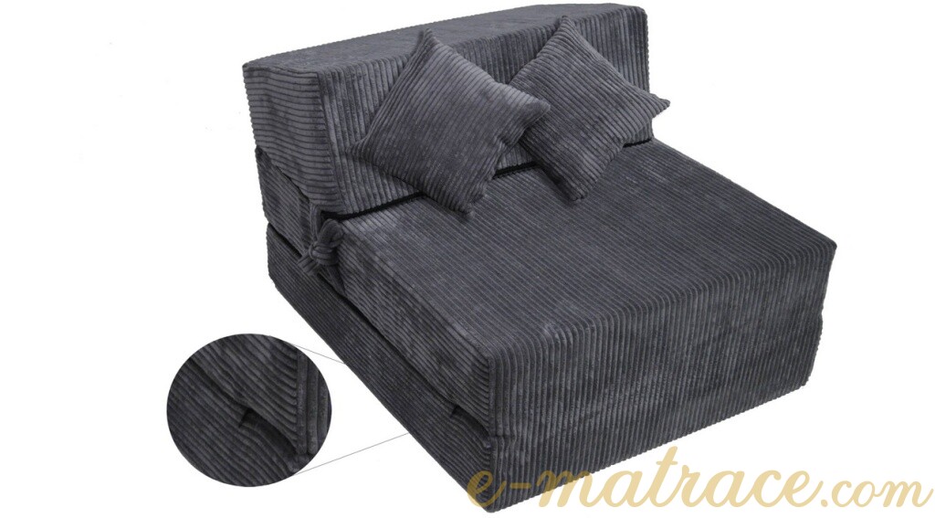 Jádro rozkládacího křesla je vyrobené z odolné PUR pěny. Svou tloušťkou 15 cm a nosností do 120 kg zajistí dostatečný komfort pro všechny typy postav. Jednoduché rozložení a složení, podle toho co v danou situaci potřebujete. Tvarovaná opěrka s jemným sklonem je příjemná k sezení i spaní. Potah je vyroben z vysoce kvalitní polstrované textílie, v případě znečištění ho lze sejmout pomocí zipu a vyprat v pračce při 30°C. Na výběr je mnoho barevných a vzorových variací.