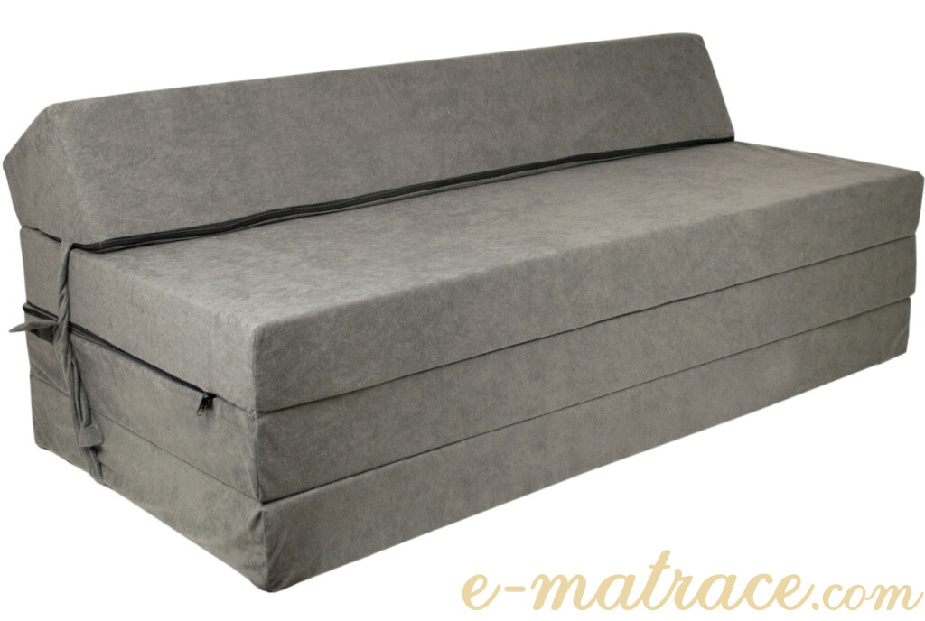 Rozměr pohovky: 60x120x30 cm. Rozměr po rozložení: 200x120x10 cm. Rozkládací pohovka v šedé barvě slouží také jako skládací matrace pro hosty.