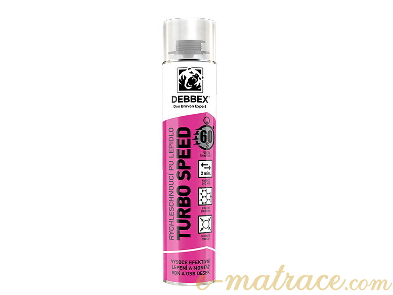 Jednosložková, rychleschnoucí, montážní a konstrukční pěna na bázi vlhkem vytvrzujícího polyuretanu s vysokou přilnavostí ke většině stavebním podkladům - rychleschnoucí lepidlo PU Turbo Speed. Slouží k lepení EPS a XPS desek, sádrokartonu, dřevěných prvků, OSB desek, dekorativních prvků a vnitřních příček. Počátek tuhnutí již po 60 sekundách a možnou korekcí do 2 minut. Výborná přilnavost na beton, omítku, dřevo, polystyren, neměkčené PVC apod.