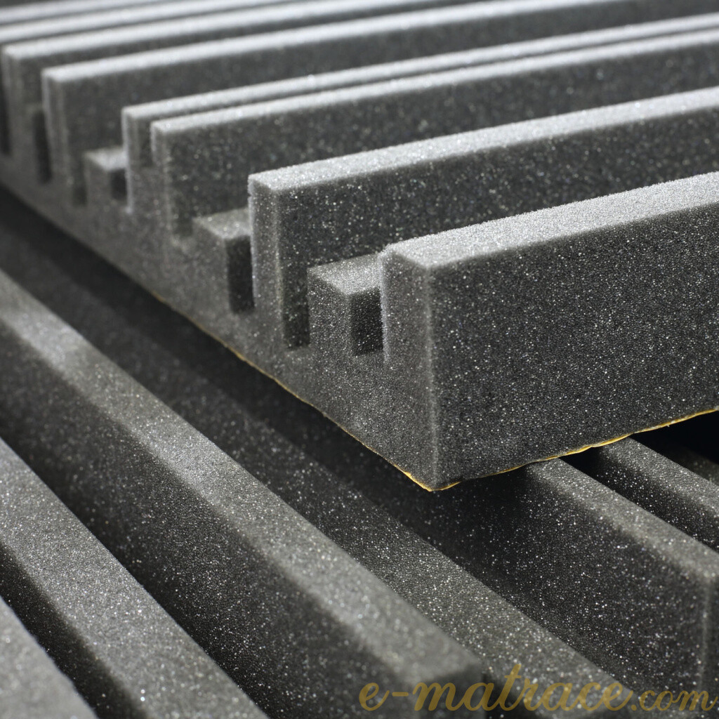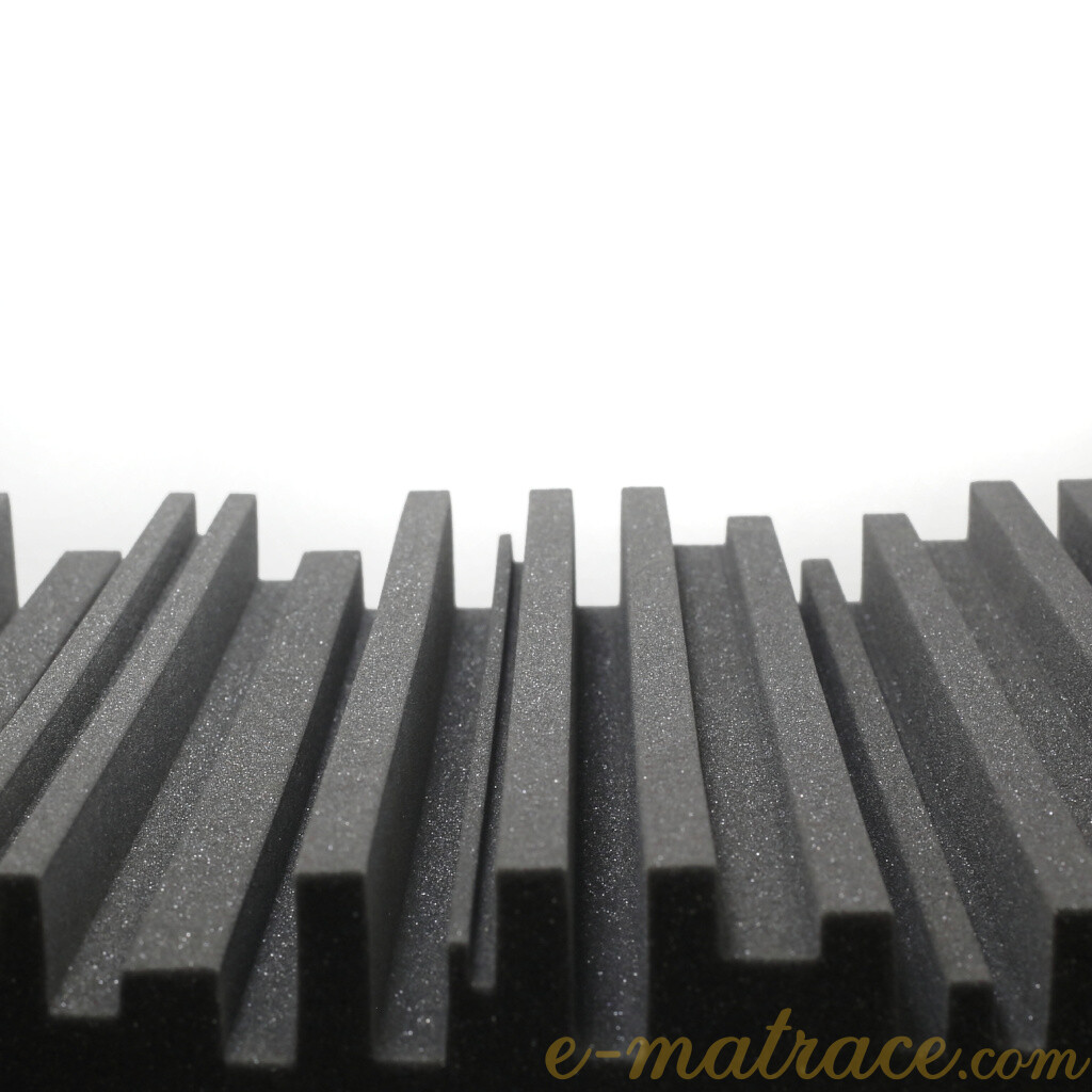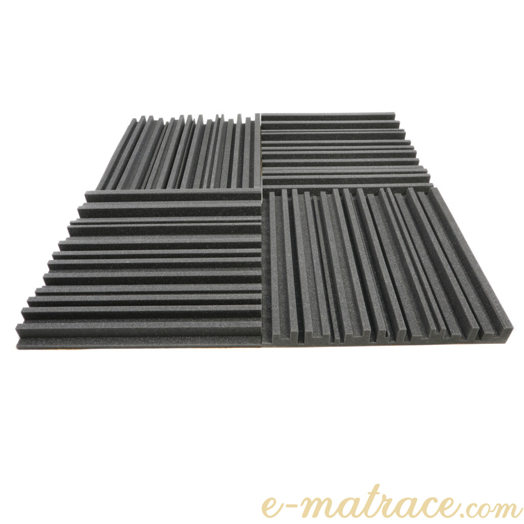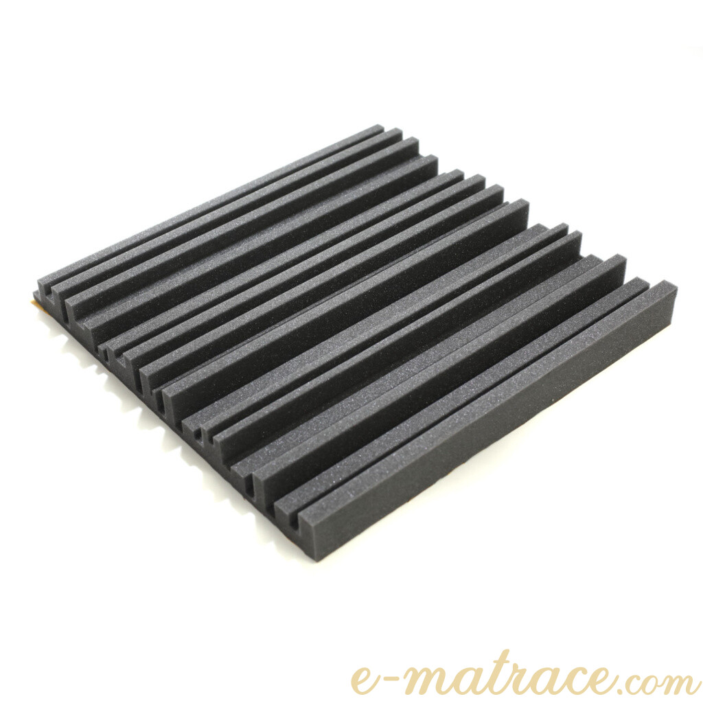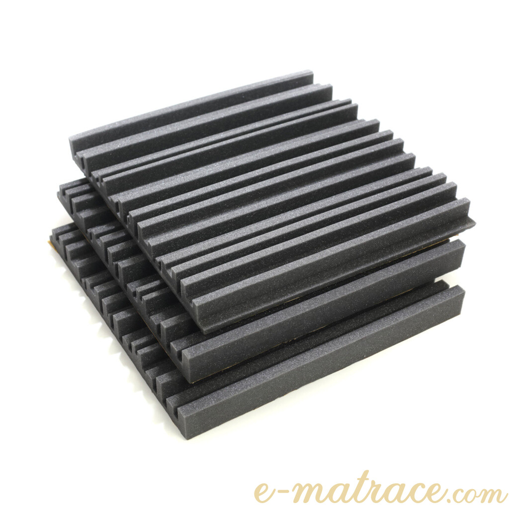 Akustická pěna vlnky v rozměrech 50x50x4 cm nebo 110x190x4 cm v grafitové barvě pro pohlcení zvuku v interiéru.