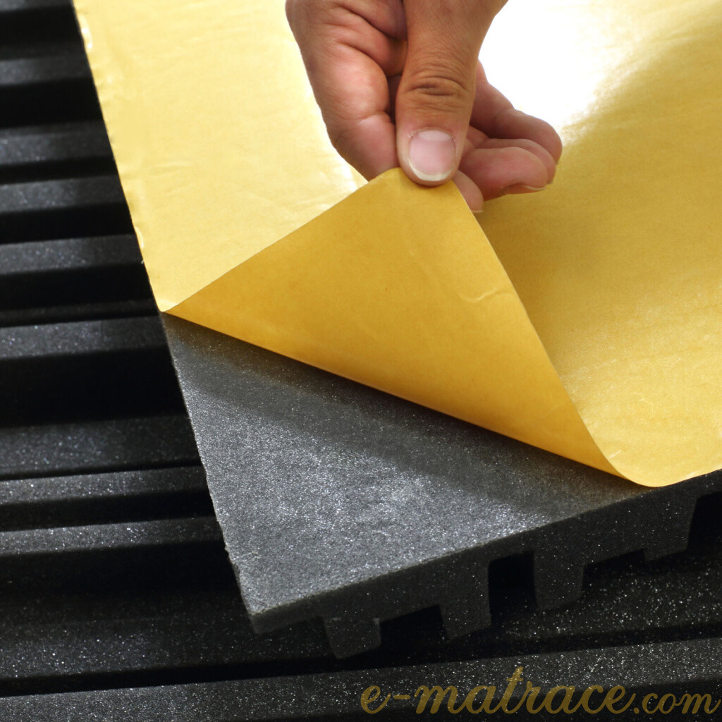 Samolepící akustickou pěnovou desku klíny grafit využije každý, kdo požaduje snížení hluku, resp. pohlcení zvuku ať už se jedná o místnost, kde máte domácí kino, hudební zkušebnu nebo nahrávací studio apod. a nechce desky lepit standardní cestou, tedy PUR lepidlem. Práce se samolepícími deskami je velmi jednoduchá a čistá. Deska je profilována do tvaru klínů pro lepší pohlcení zvuku z více úhlů.