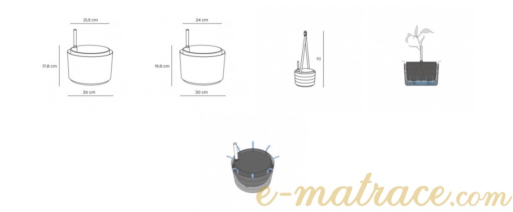 Samozavlažovací závěsný květináč Berberis o průměru 26 cm se závěsným odnímatelným popruhem. Maximální zatížení květináče 4,5 kg.