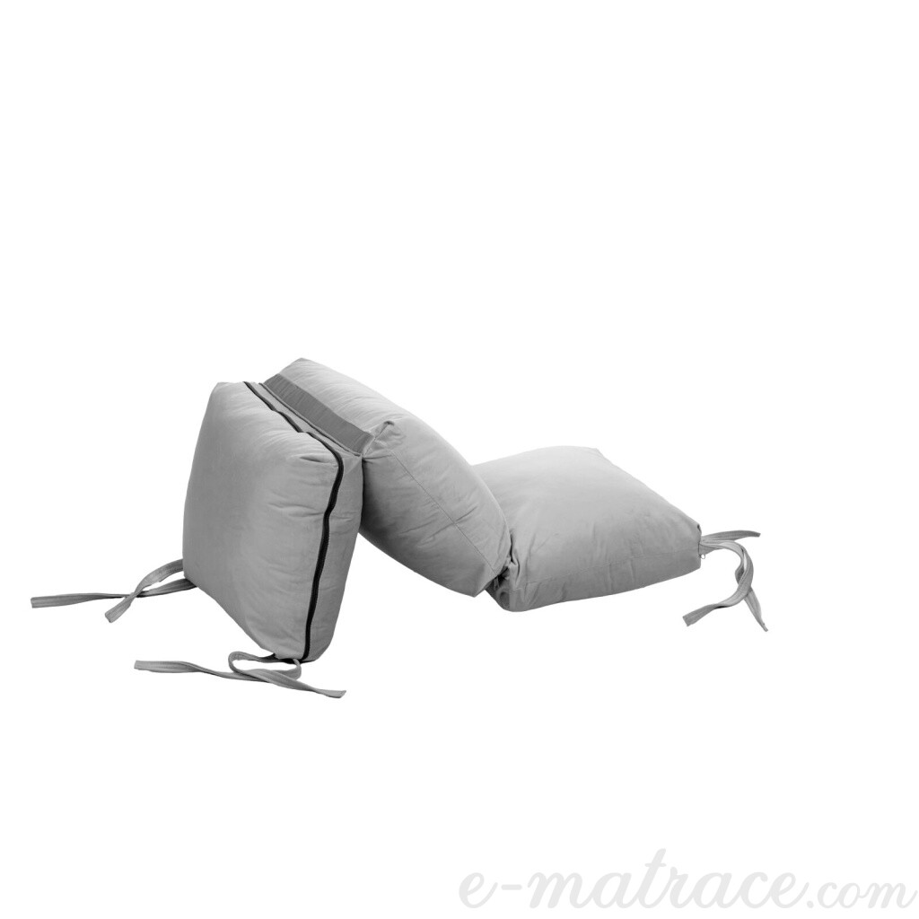 Šedé polstrování pro Montessori houpačku XXL 6v1 s možností upevnění na šňůrky. Každý polštář má samostatný zip pro vyjmutí polstrování a možnosti potah vyprat.