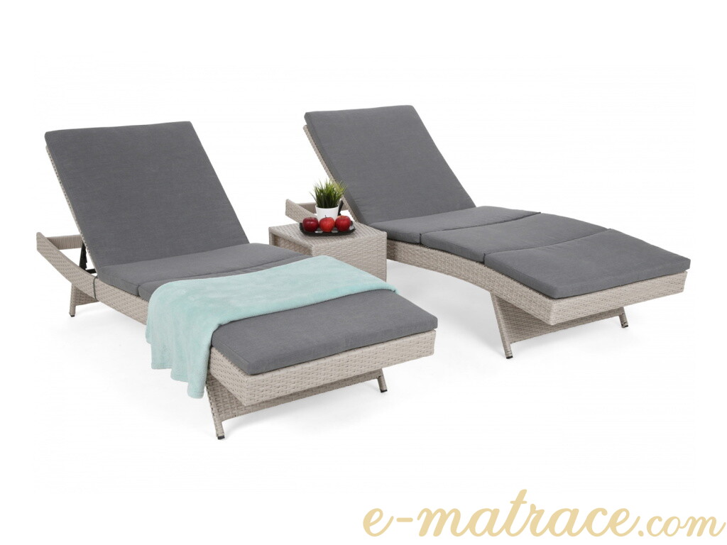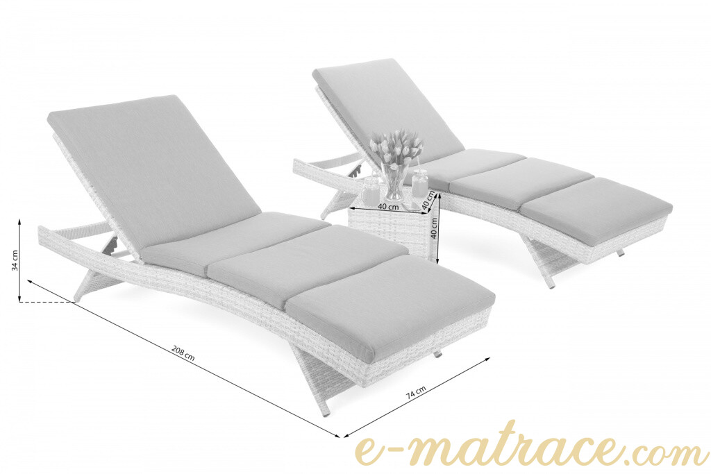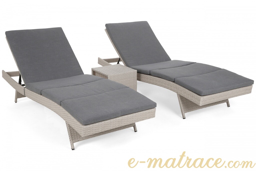 Sestava lehátek Bora Bora White / Grey + stolek je ideálním řešením na zahradu, terasu nebo k bazénu. Jejich předností je výhodná cena a stejný design / barva všech komponentů. Jednoduše si stůl a dvě lehátka objednáte jako jeden produkt.