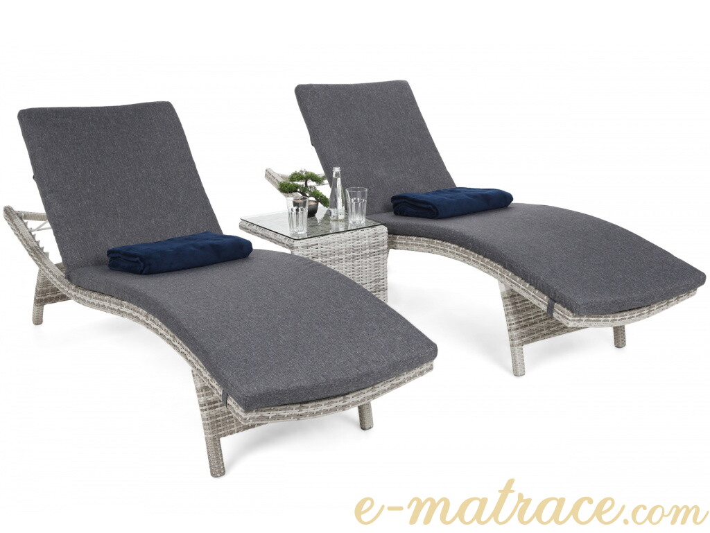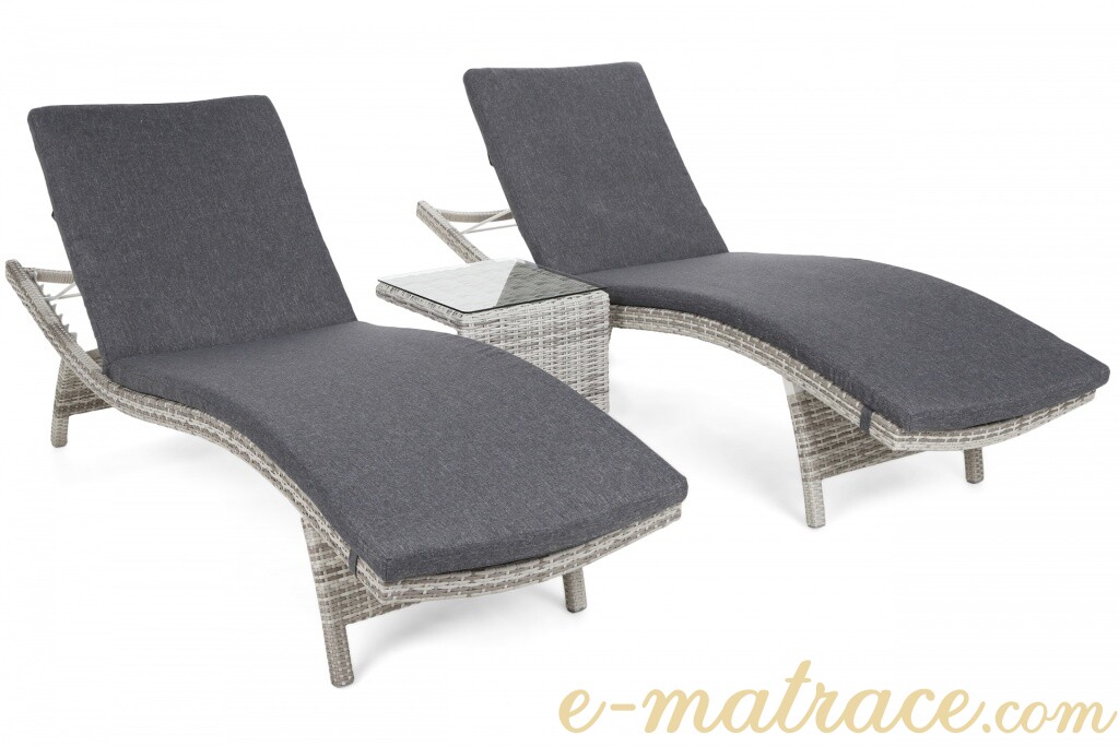 Sestava lehátek Marbella Grey / Grey Melange + stolek je ideálním řešením na zahradu, terasu nebo k bazénu. Jejich předností je výhodná cena a stejný design / barva všech komponentů. Jednoduše si stůl a dvě lehátka objednáte jako jeden produkt.