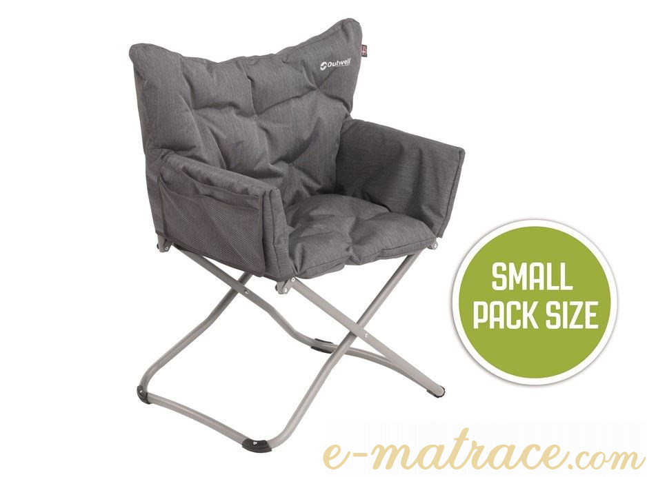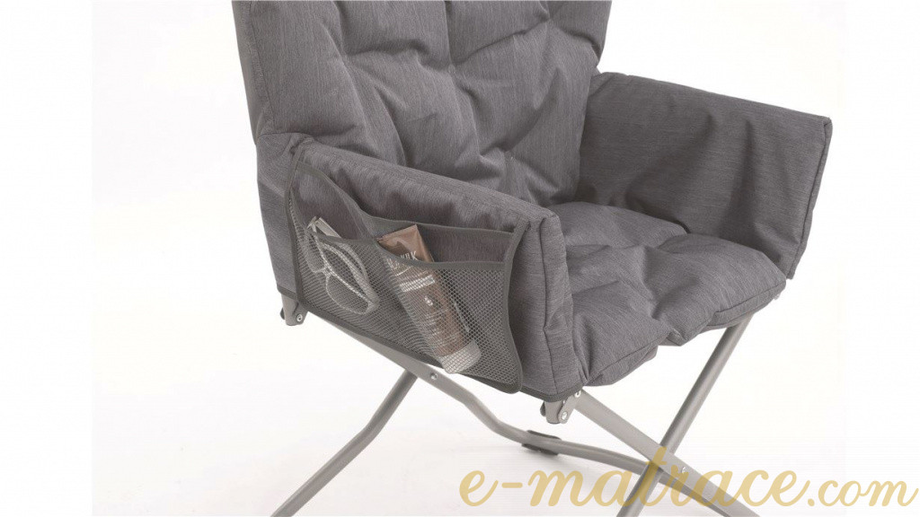 Skládací křeslo Grenada Lake již na první dojem navozuje pocit pohodlí. Měkké polstrování poskytuje komfort a oporu na těch správných místech. Křeslo je možné použít i bez vrchního polstrování. Na boku křesla se nachází praktická kapsa na drobnosti. Ocelový rám je velmi odolný a pevný, zajišťuje základní stabilitu. Snadné rozložení a složení křesla probíhá během několika sekund. Není nutná žádná montáž. Součástí balení je také brašna pro uskladnění a pohodlné přenášení křesla. Maximální nosnost 150 kg.