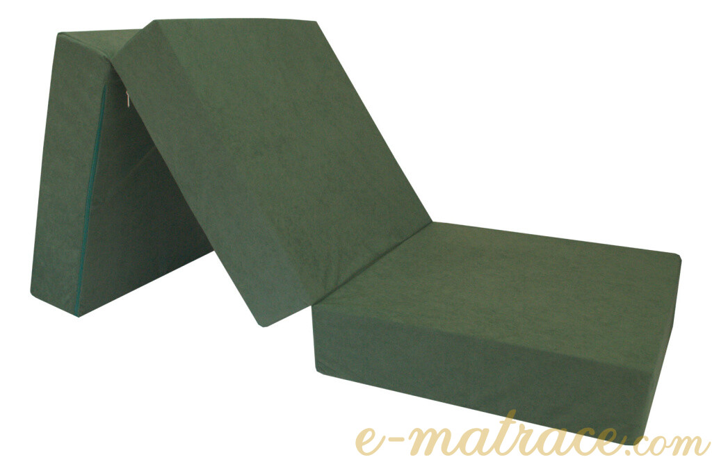 5 rozměrových variant = (60, 70, 80) x 195 x (8, 10, 15) cm. Skládací matrace pro hosty Fun v tmavě zelené barvě + praktický obal zdarma.