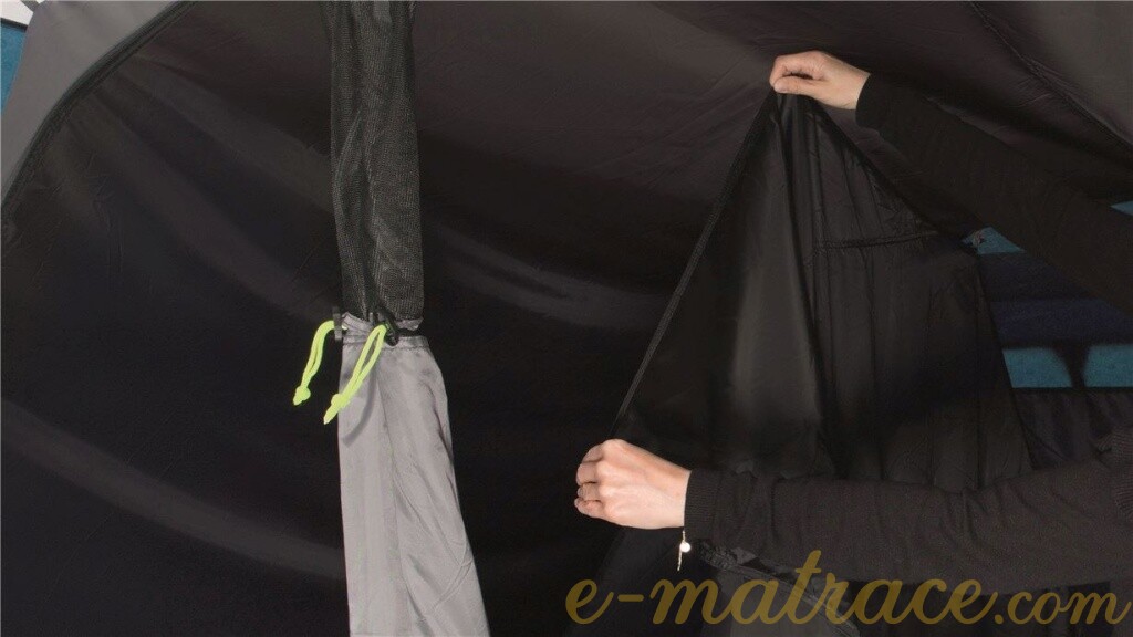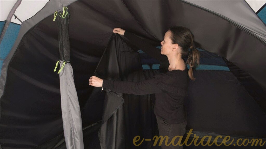 Uvnitř stanu se nachází dvě prostorné ložnice s podlahovou délkou 210 cm. Stěnu mezi ložnicemi lze snadno pomocí zipu rozepnout a vytvořit tak jeden společný spací prostor. V ložnicích se dále nachází kapsy ze síťoviny pro bezpečné a snadné umístění drobností. Propustnost světla snižují zatemněné stropy. Před ložnicemi se nachází obytný prostor s optimální výškou. Velké boční okno v obytném prostoru zajistí dostatek světla a skvělý výhled do okolní přírody. Zadní část stanu umožňuje proudění vzduchu, čímž zabraňuje kondenzaci. Samozřejmostí je také přepravní obal.