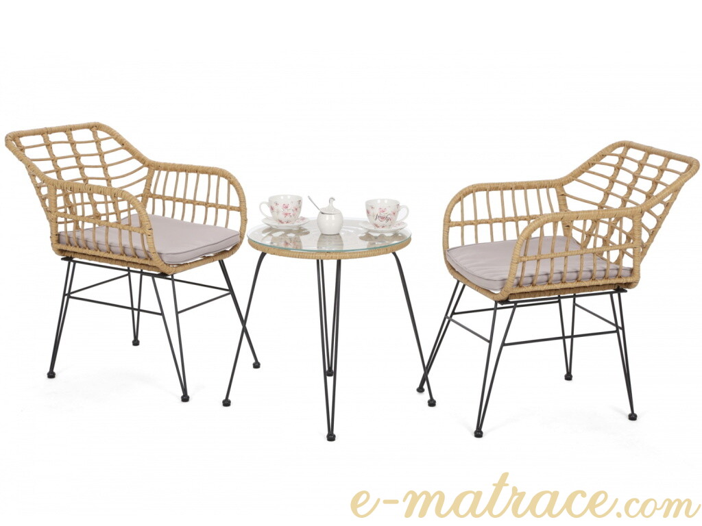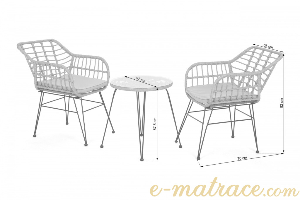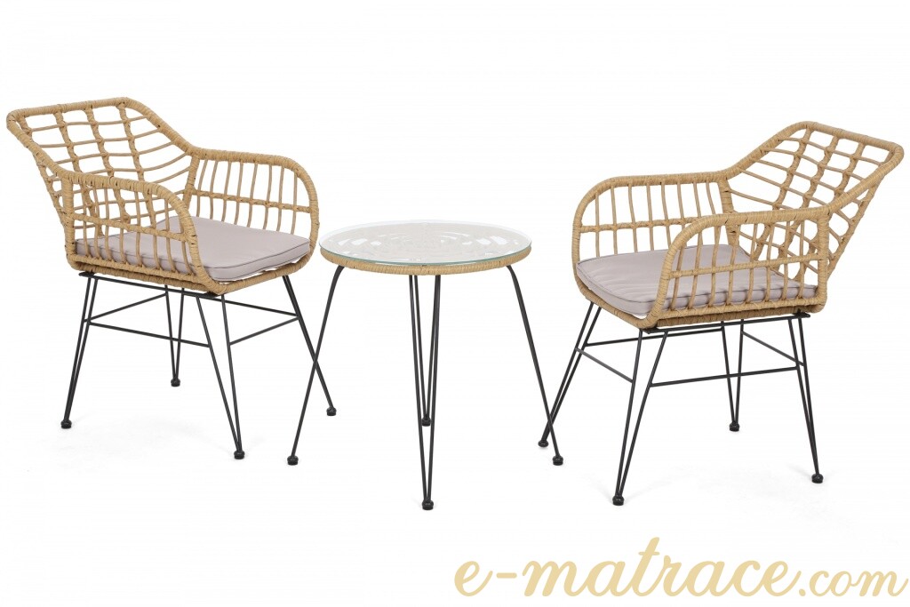 Zahradní sestava Bono obsahuje jeden kulatý stolek a dvě židle. Konstrukci nábytku kombinují hliníkové profily s práškovým nástřikem a umělý ratan, jenž celé sestavě přináší vysoce elegantní vzhled. Umělý ratan je navíc odolný, snadno se udržuje a dlouho si zachovává svůj vzhled. Pro maximální pohodlí jsou křesla vybavena vkusnými podsedáky. Konferenční stolek disponuje tvrzeným sklem s tloušťkou 0,5 cm.