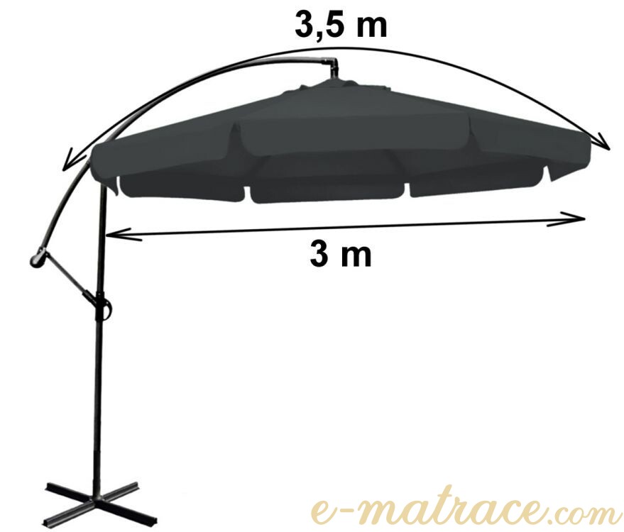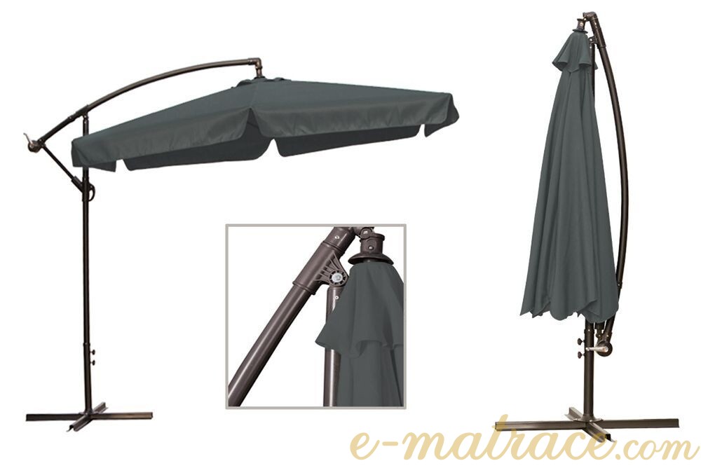 Zahradní slunečník 350 cm s ocelovou konstrukcí v šedém provedení. Snadné a rychlé rozložení konstrukce.